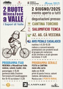Vi aspettiamo il 2 giugno 2025 alla biciclettata FIAB organizzata nell’ambito dell’evento “2 Ruote Wine&Food a Valle”: un’esperienza imperdibile tra pedalate, paesaggi e gusto!
